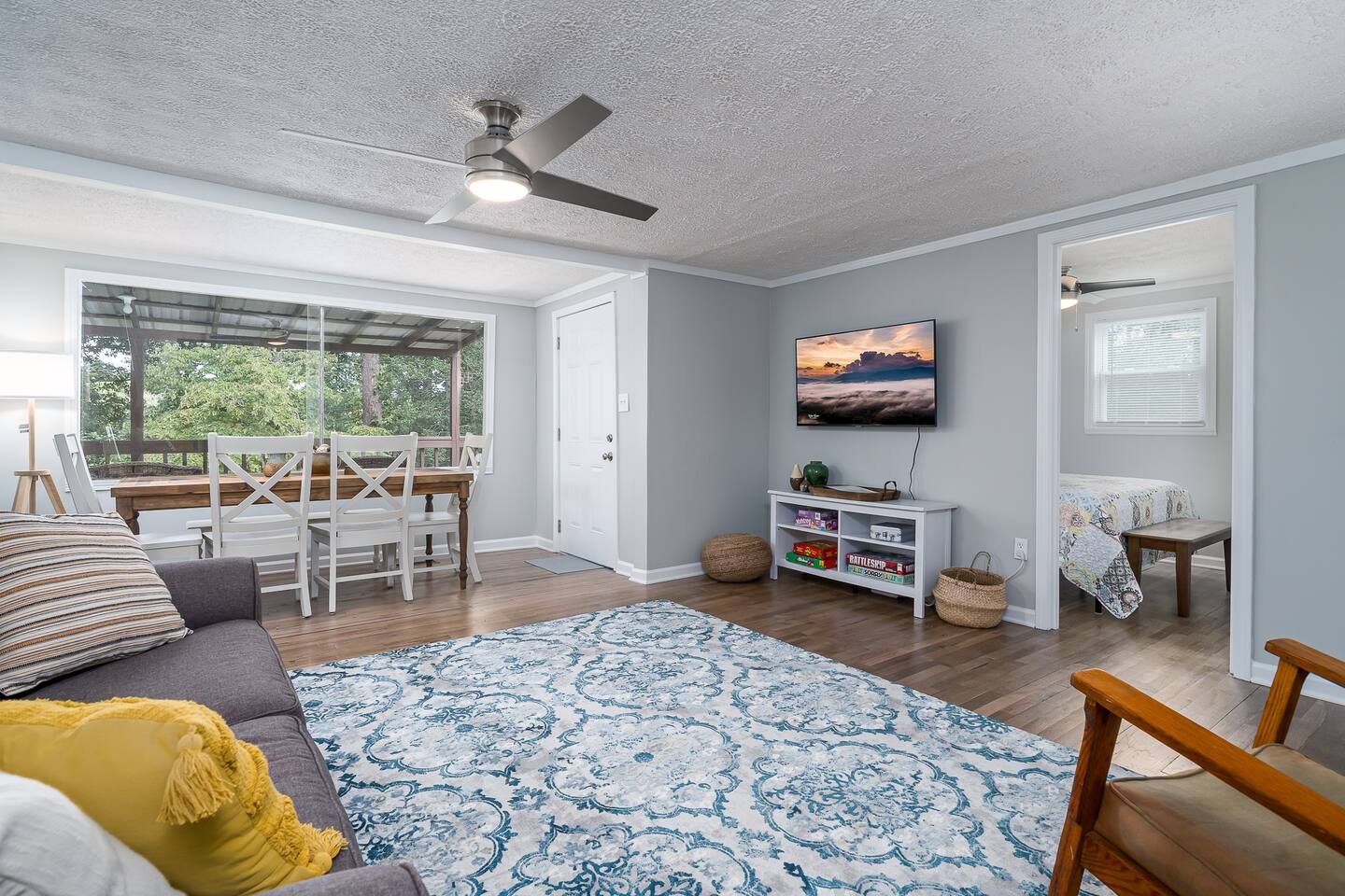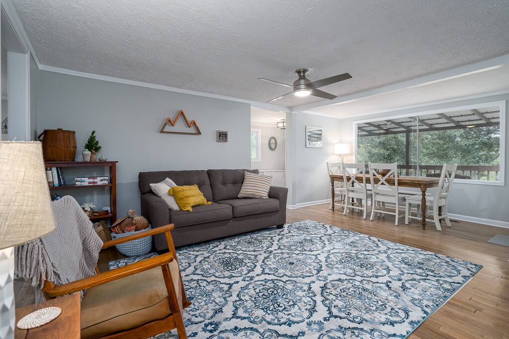 Peaceful ranch style cottage nestled in the Blue Ridge mountains, located minutes from McCaysville, Copperhill, and downtown Blue Ridge. In less than 2 miles you will find waterside dining, shopping, and seasonal tubing. Watch the tubers go down the river while enjoying dinner, drinks, and desserts. 10 minutes from popular Mercier Orchards, grab a homemade apple pie or freshly made apple cider while enjoying orchard shopping and activities.